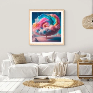 Plakat i ramme af lyst egetræ - En drøm om en forlystelsespark - 50x50 cm