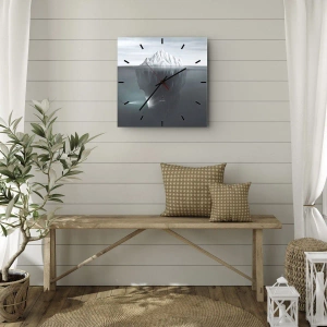 Uret på glas er klar til at hænge på væggen, det er udstyret med en monteret metalophæng for nem montering