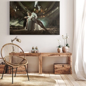 - Maleriet forestiller to figurer i mystiske omgivelser med forladte ruiner. Englesymbolik og samspillet mellem lys og skygge skaber en mystisk og dramatisk atmosfære. Perfekt til interiører med et strejf af gotik og mystik.