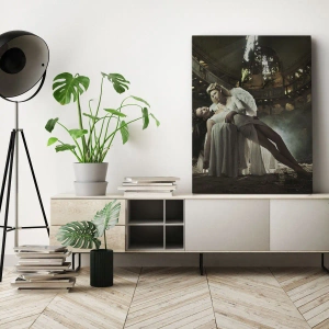Dette maleri passer perfekt ind i rum med en mørk, gotisk karakter eller interiører, der søger en unik dekoration med dyb symbolik. Lys- og skyggespillet, der bruges på lærredet, fremhæver detaljerne i både personerne og omgivelserne, hvilket giver værket en ekstra dimension og intensitet.