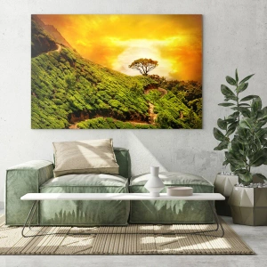 Billedet på glas er lavet af 4 mm tykt glas. Glassets kanter har et mat trapezformet snit. Billedet er sikkert at bruge og klar til at hænge op - der er metalophæng fastgjort på bagsiden af billedet og skumafstandsstykker til at regulere billedets jævne afstand fra væggen.