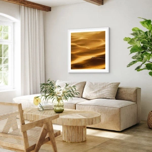 Plakat i hvid ramme - Karavane på ørkenens bølger - 70x100 cm