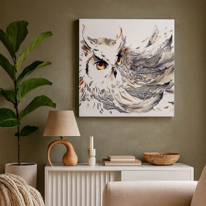 Uglemotivet, der symboliserer visdom, mystik og magi, giver maleriet dybde og mening. Takket være sin moderne stil passer værket perfekt ind i minimalistiske og stilfulde indretninger. Den udtryksfulde form og de rige fjerdekorationer tiltrækker opmærksomhed og gør maleriet til et dekorativt fokuspunkt i ethvert rum.