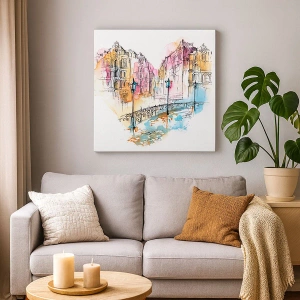 Lærredstryk - Billede på lærred - Byens hjerte - 100x40 cm