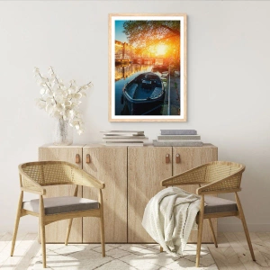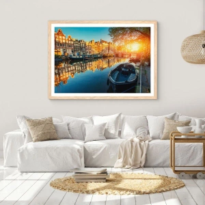 Plakat i ramme af lyst egetræ - Morgen i Amsterdam - 40x30 cm