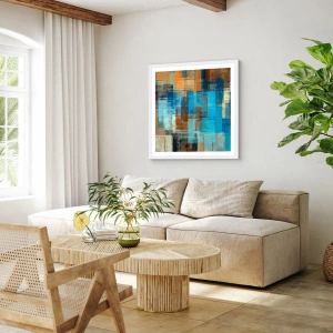 Plakat i hvid ramme - Gennem det blå slør - 50x50 cm
