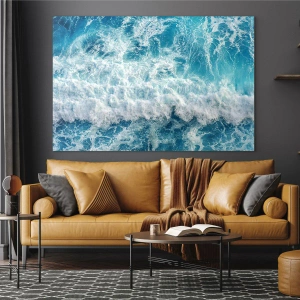 Blå bølger, der slår mod kysten, er et ekstraordinært syn, der begejstrer med sin dynamik og farvedybde. Dette glasbillede indfanger perfekt naturens skønhed og viser havets rastløse natur og dets ekstraordinære harmoni. Turkis vand kombineret med bølgernes hvide skum skaber en unik kontrast, der tiltrækker opmærksomhed og introducerer en unik atmosfære til interiøret.
