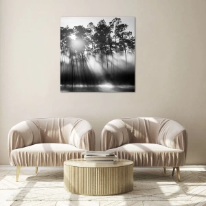 Billedet på glas er lavet af 4 mm tykt glas. Glassets kanter har et mat trapezformet snit. Billedet er sikkert at bruge og klar til at hænge op - der er metalophæng fastgjort på bagsiden af billedet og skumafstandsstykker til at regulere billedets jævne afstand fra væggen.