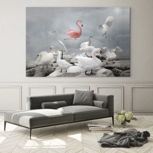 Billedet på glas er lavet af 4 mm tykt glas. Glassets kanter har et mat trapezformet snit. Billedet er sikkert at bruge og klar til at hænge op - der er metalophæng fastgjort på bagsiden af billedet og skumafstandsstykker til at regulere billedets jævne afstand fra væggen.