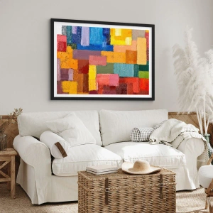 Plakat i sort ramme - Abstrakte farverige rektangler i en harmonisk komposition - 50x70cm - Hver især forskellige, alle farverige - Moderne vægdekoration til stue og soveværelse ARTTOR