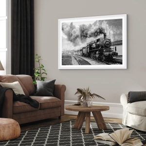 Plakat i hvid ramme - Står på stationen... - 40x30 cm
