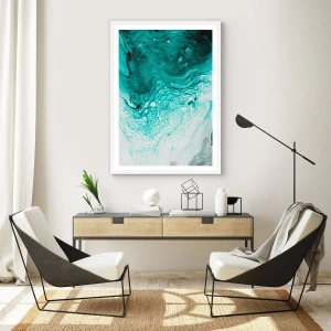 Plakat i hvid ramme - Opløses i hvidt og turkis - 50x70 cm