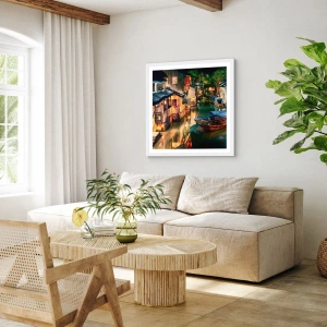 Plakat i hvid ramme - En aften på en kinesisk gade - 30x30 cm