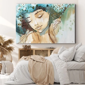Lærredstryk - Billede på lærred - Lady in blue - 100x40 cm