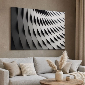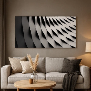 Lærredet er spændt op over rammen. Siderne og kanterne trykkes for at danne en fortsættelse af billedet. Maleriet er klar til at blive hængt op på væggen. Hvert produkt har en bøjle, der er fastgjort til rammen, og et samlesæt (skrue + dyvel).