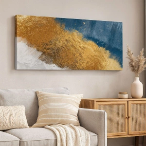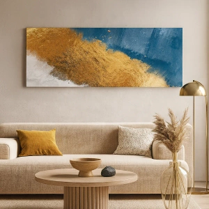 Lærredstryk - Billede på lærred - En abstrakt komposition i nuancer af guld, blå og hvid. - 70x50cm - Sommerens farver - Moderne vægdekoration til stue og soveværelse ARTTOR