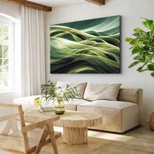 Lærredstryk - Billede på lærred - Dynamiske linjer i grønne nuancer - 70x50cm - Et abstrakt spil med grønt - Moderne vægdekoration til stue og soveværelse ARTTOR