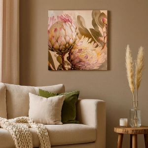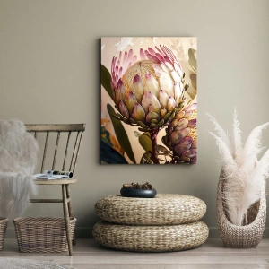 Lærredet er spændt op over rammen. Siderne og kanterne trykkes for at danne en fortsættelse af billedet. Maleriet er klar til at blive hængt op på væggen. Hvert produkt har en bøjle, der er fastgjort til rammen, og et samlesæt (skrue + dyvel).