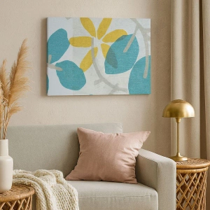 Lærredstryk - Billede på lærred - Blandt azurblå blade - 100x40 cm