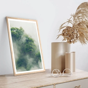 Plakat i ramme af lyst egetræ - Pakket ind i tåge - 100x70 cm