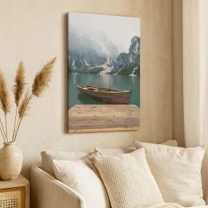 Lærredet er spændt op over rammen. Siderne og kanterne trykkes for at danne en fortsættelse af billedet. Maleriet er klar til at blive hængt op på væggen. Hvert produkt har en bøjle, der er fastgjort til rammen, og et samlesæt (skrue + dyvel).