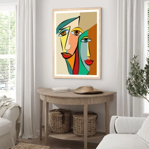 Plakat i ramme af lyst egetræ - Kubistisk par - 50x70 cm