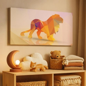 Lærredstryk - Billede på lærred - Geometrisk silhuet af en løve i gule og orange nuancer - 70x50cm - Diamantkongen - Moderne vægdekoration til stue og soveværelse ARTTOR