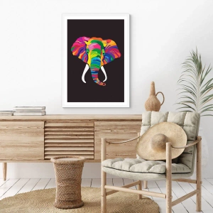 Plakat i hvid ramme - Elefanten, der elskede at bade i regnbuen - 50x50 cm