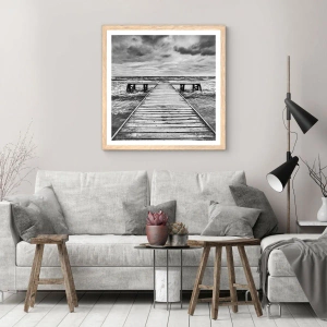 Plakat i ramme af lyst egetræ - Jeg venter på, at vinden blæser væk... - 100x70 cm