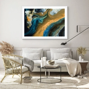 Plakat i hvid ramme - Blå - gul - gensidig indflydelse - 100x70 cm