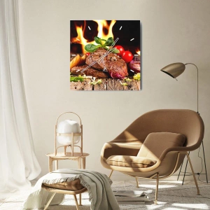 Vægur, Uret - Bøf med grøntsager på bålet - 30x30cm - Fremkaldt med varme - Moderne vægdekoration til stue, køkken og soveværelse ARTTOR