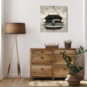 Uret på glas er klar til at hænge på væggen, det er udstyret med en monteret metalophæng for nem montering