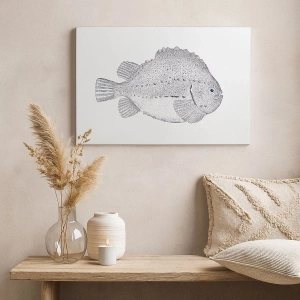 Lærredstryk - Billede på lærred - Sort-hvid tegning af en fisk på en hvid baggrund i minimalistisk stil - 70x50cm - Til naturforskerens album - Moderne vægdekoration til stue og soveværelse ARTTOR