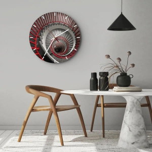 Uret er fremstillet af 4 mm tykt sikkerhedsglas. Urets fremstillingsteknologi er i overensstemmelse med sikkerhedsklasse 2B2 i henhold til EN 12600:2004, hvilket garanterer slagfasthed. Uret på glas er klar til at blive hængt op - det har et metalophæng fastgjort på bagsiden af uret og en skumafstandsholder til at regulere urets lige afstand fra væggen. Uret har en lydløs mekanisme, der drives af et 1,5 V - AA-batteri (batteri medfølger ikke).