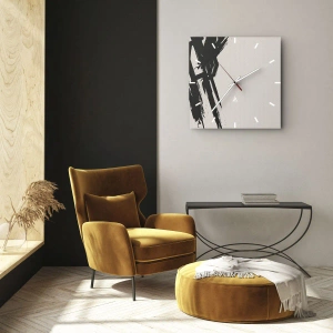 Vægur, Uret - Sorte udtryksfulde penselstrøg på en lys baggrund - 30x30cm - Ustoppeligt momentum - Moderne vægdekoration til stue, køkken og soveværelse ARTTOR