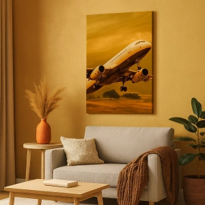 Maleriet blev trykt på premium lærred, hvilket sikrer farveintensitet og trykkets holdbarhed. Formatet 70x50 cm vil være perfekt som et dekorativt midtpunkt i en stue, et kontor eller et venteværelse. Den præcise trykteknik fremhæver detaljer såsom lysrefleksioner på flykroppen og skyernes tekstur.