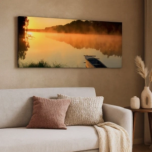 Lærredstryk - Billede på lærred - Solopgang over vand som en spejlplade - 100x40 cm