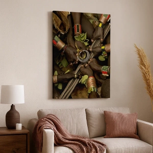 Lærredskunst "Traditionelle armbånd på hænder" er et unikt værk, der hylder kulturens og traditionens skønhed. Det skildrer et nærbillede af en gruppe hænder prydet med indviklet udformede armbånd, der hver især er unikke og bærer en dyb betydning. De farverige ornamenter og detaljer, der pryder hænderne, understreger rigdommen ved traditionelt håndværk.