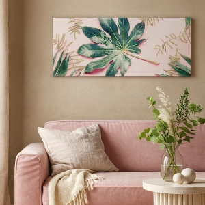 Lærredstryk - Billede på lærred - En undersøgelse af grønt på en lyserød baggrund - 45x80 cm
