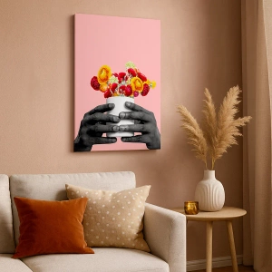 • Abstrakt, kunst, blomster, Botanik, Blomster, Mennesker, Stilleben, Til spisestuen, til hallen, til stuen, til soveværelset, Rød, Orange, Pink, Grå, Kvadratisk