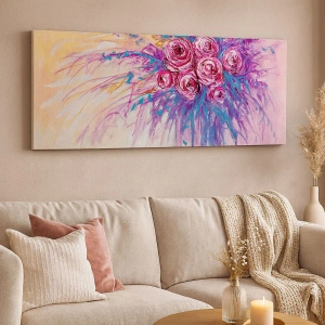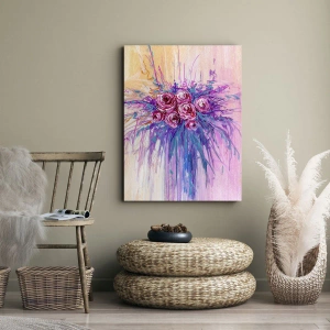 Lærredet er spændt op over rammen. Siderne og kanterne trykkes for at danne en fortsættelse af billedet. Maleriet er klar til at blive hængt op på væggen. Hvert produkt har en bøjle, der er fastgjort til rammen, og et samlesæt (skrue + dyvel).