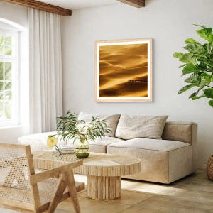 Plakat i ramme af lyst egetræ - Karavane på ørkenens bølger - 100x70 cm