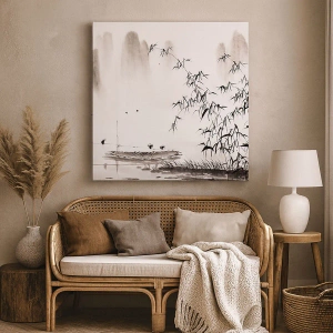 Lærredstryk - Billede på lærred - Stilhed i rismarkerne - 45x80 cm