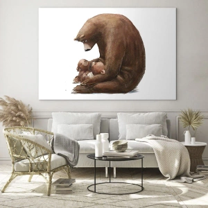 Høj kvalitet i håndværk går hånd i hånd med illustrationens tidløse budskab. Et børneværelse med denne accent bliver endnu mere hyggeligt og trygt. Berøring af bjørne, varme kram og familienærhed er motiver, der appellerer til alle. Illustrationen minder os om familiens styrke, ømhed og omsorg – den perfekte dekoration til et barns verden.