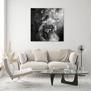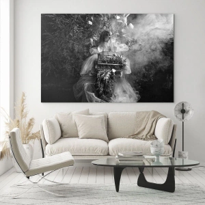 Fotoet er fyldt med betydninger og associationer - kronen af naturlige elementer fremkalder det arketypiske billede af Moder Natur, mens buret kan symbolisere begrænsninger. Tyllen og røgen forstærker indtrykket af uvirkelighed og spiritualitet. Maleriet vil være perfekt til stuer, soveværelser eller kunststudier.