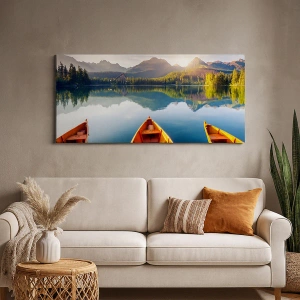 Lærredet er spændt op over rammen. Siderne og kanterne trykkes for at danne en fortsættelse af billedet. Maleriet er klar til at blive hængt op på væggen. Hvert produkt har en bøjle, der er fastgjort til rammen, og et samlesæt (skrue + dyvel).
