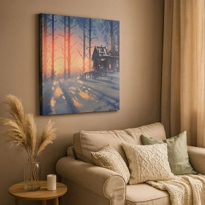 Lærredet er spændt op over rammen. Siderne og kanterne trykkes for at danne en fortsættelse af billedet. Maleriet er klar til at blive hængt op på væggen. Hvert produkt har en bøjle, der er fastgjort til rammen, og et samlesæt (skrue + dyvel).
