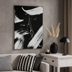 Lærredet er spændt op over rammen. Siderne og kanterne trykkes for at danne en fortsættelse af billedet. Maleriet er klar til at blive hængt op på væggen. Hvert produkt har en bøjle, der er fastgjort til rammen, og et samlesæt (skrue + dyvel).