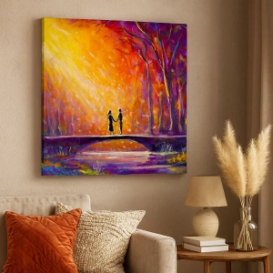 Lærredet er spændt op over rammen. Siderne og kanterne trykkes for at danne en fortsættelse af billedet. Maleriet er klar til at blive hængt op på væggen. Hvert produkt har en bøjle, der er fastgjort til rammen, og et samlesæt (skrue + dyvel).