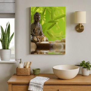 Lærredet er spændt op over rammen. Siderne og kanterne trykkes for at danne en fortsættelse af billedet. Maleriet er klar til at blive hængt op på væggen. Hvert produkt har en bøjle, der er fastgjort til rammen, og et samlesæt (skrue + dyvel).